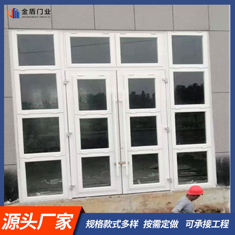 2.鋁製国产探花视频网站門---門扇部分用型鋼做骨架,內外兩側門麵為鋁板,中間填充岩棉,為保溫型国产探花视频网站門。